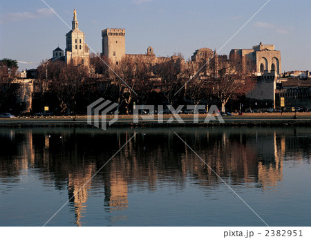 ローヌ川から見たアビニョン法王庁 南仏 プロヴァンス フランス
