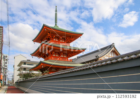 城下町の風情を残す尼崎寺町の本興寺 三重塔