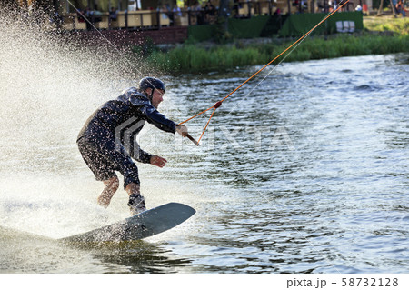 Wake boarding sportsman portrait, sport and active lifestyle, man photo portrait
