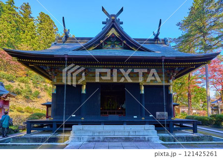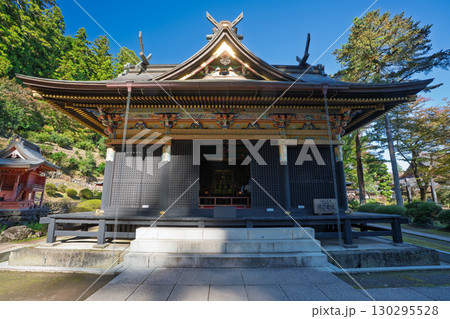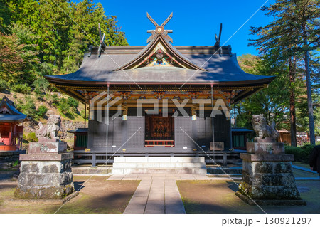 秋の群馬県富岡市の妙義神社の波己曽社社殿を見る
