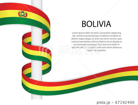 Waving ribbon on pole with flag of Bolivia. Template for indepen