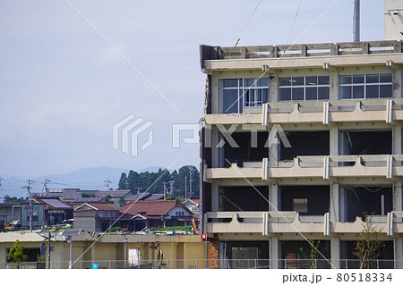 震災遺構の気仙沼向洋高校外観、宮城県気仙沼市