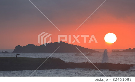 気仙沼市の観光地岩井崎で見る朝日と潮吹き岩