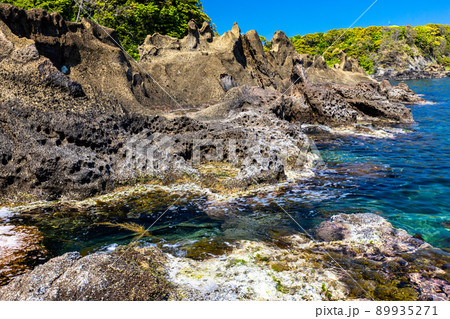 自然に出来た奇岩の風景(日本・高知県・竜串海岸)