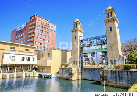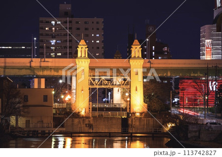 新なにわ筋(湊橋)から大阪市中央卸売市場方面の夕景