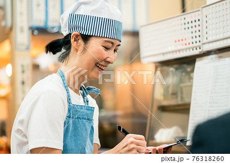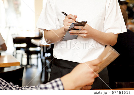 注文を取る飲食店の店員 女性 仕事 アルバイト