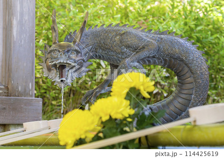 冬の鞍馬寺 転法輪堂前の手水舎の龍