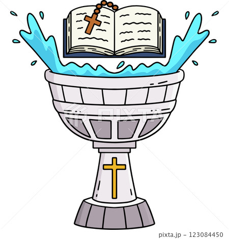 Cartoon baptismal water with symbolism and purity