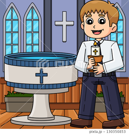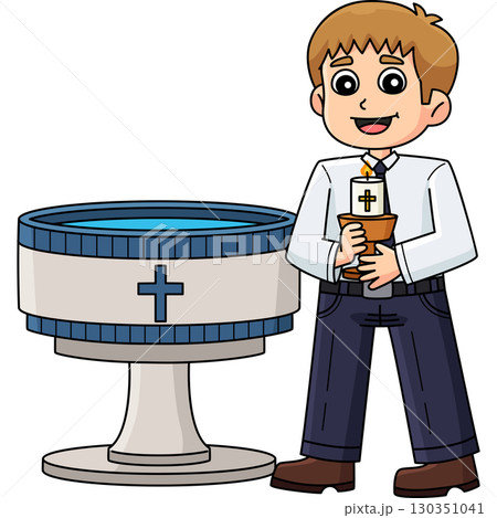 Baptism Boy Praying Colored Cartoon Illustration