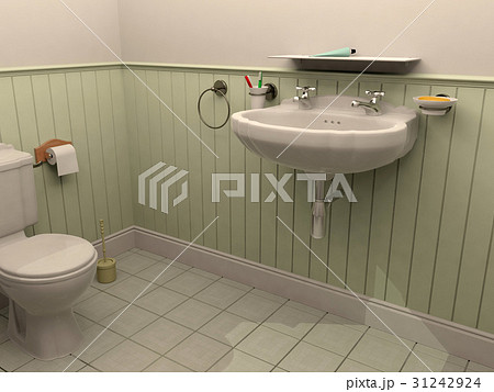 Toilet room interior with wash basin