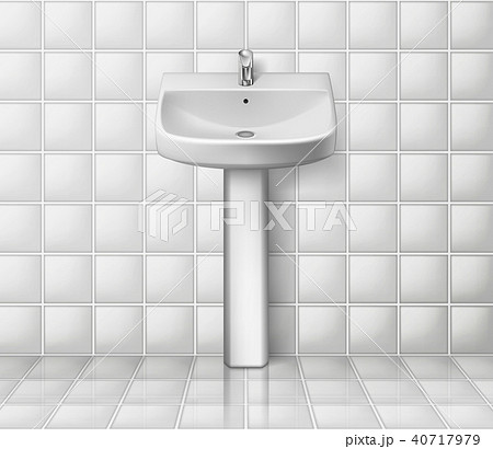 Bathroom interior with white sink. Realistic washbowl. Bathroom sink mockup isolated. Vector