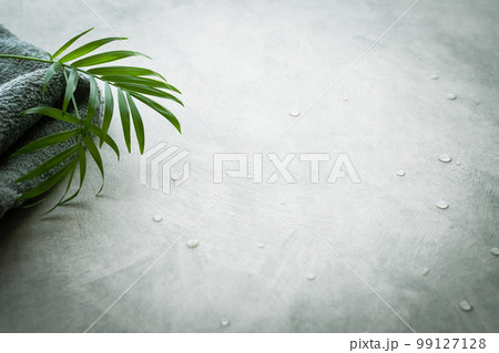 タオルと植物の葉 ビューティー背景素材