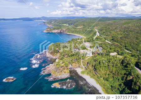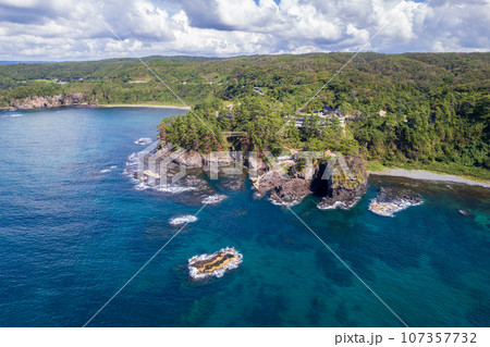 ドローン撮影|断崖絶壁の奇岩の観光名所能登金剛の巌門(がんもん)イメージ|石川県羽咋郡志賀町