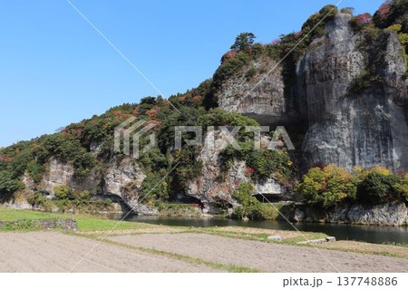 秋の青の洞門 競秀峰 大分県中津市
