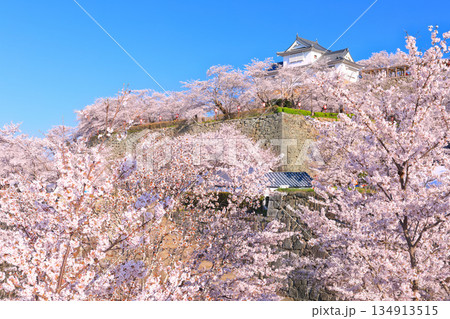 鶴山公園(岡山県津山市)津山城に咲く満開の桜<日本さくら名所100選>