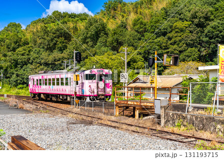 初秋の田園風景の中を走る津山駅行き姫新線普通列車 岡山県真庭市