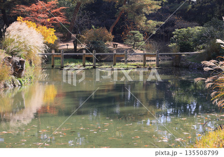 特別名勝「栗林公園」晩秋の睡竜潭の小普陀と津筏梁