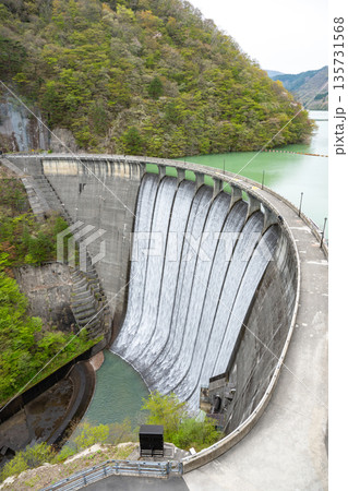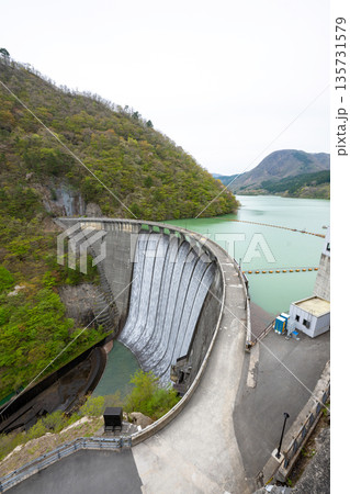宮城県/ すだれ放流(すだれ放水)が美しい春の鳴子ダム(荒雄湖)