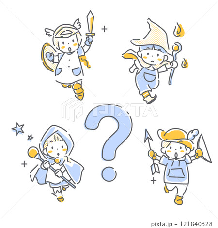 個性を活かして友達と一緒に目標達成を目指す子供たち シンプルでかわいい線画イラスト