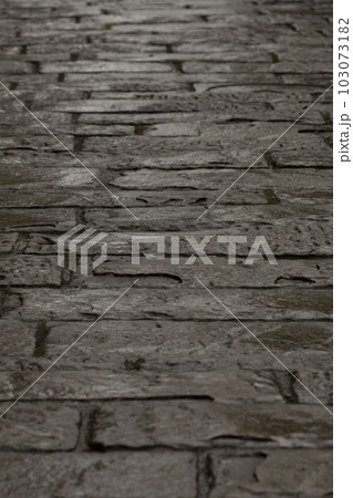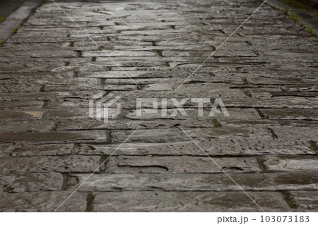 雨に濡れる石畳