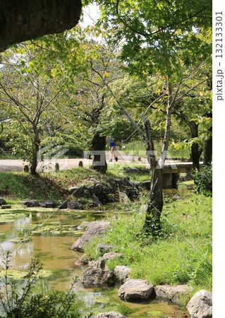 京都・円山公園を流れる川の風景