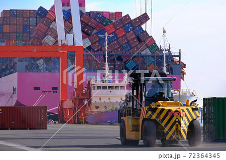 航海中に荒天によって荷崩れを起こして神戸港に寄港した大型貨物船