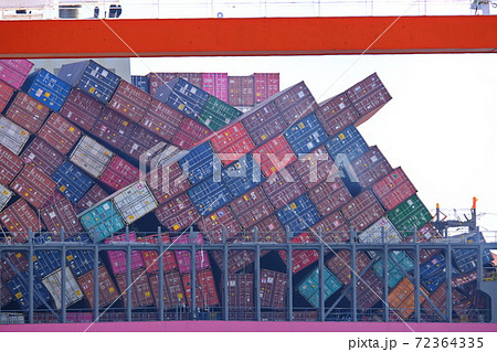 神戸港にて コンテナ船のコンテナ倒壊事故 六甲アイランド着岸中