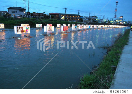 古利根川流灯まつり、薄暮の水上を照らす無数の流灯【埼玉県杉戸町】