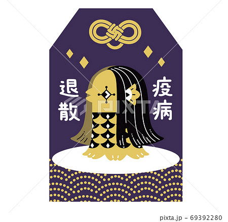 アマビエ 御守り 疫病退散 可愛いイラスト 紫