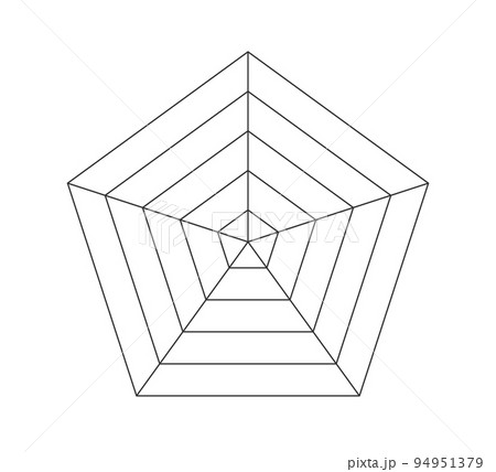 Pentagonal radar spider diagram template. Pentagon graph. Flat spider mesh. Blank five sided radar chart. Kiviat diagram for statistic and analitic. Vector illustration isolated on white background