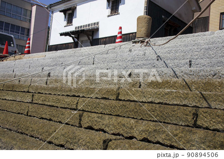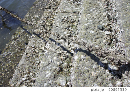 鞆の浦の雁木と貝がくっついたロープ