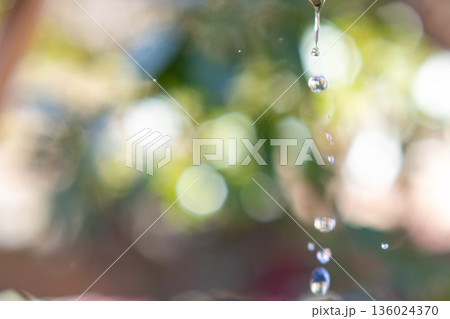 光り輝く水滴と美しいボケ味の背景