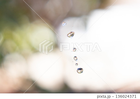 宙に浮くような透明な水の雫とボケ