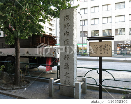 東京都港区新橋の日比谷通り沿いにある浅野内匠頭終焉の地