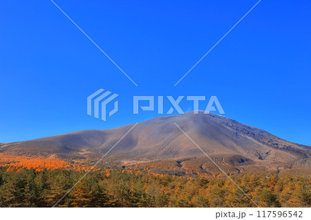 【長野県】快晴の浅間山の紅葉