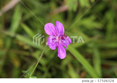 高山の花・アサマフウロの愛らしい花1輪・縦位置花アップ