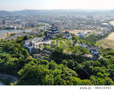唐津城から眺める松浦川と松浦橋、虹の松原、舞鶴橋方面の眺望