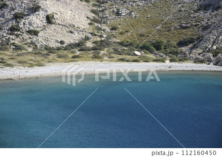 Pag island surrounded by clear sea water at sunset. Popular travel destination in Croatia famous with unique landscape offers stunning views