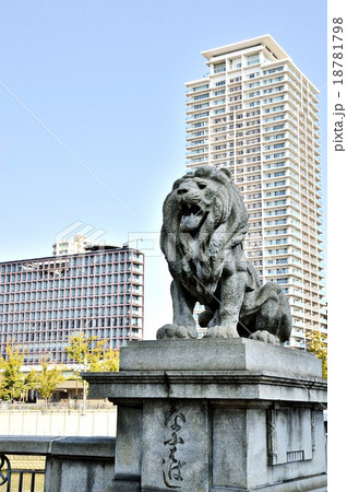 土佐堀川にかかる難波橋(ライオン橋)南詰 高欄の獅子 阿形像 大阪市中央区北浜