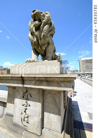 土佐堀川にかかる難波橋(ライオン橋)南詰 高欄の獅子 阿形像 大阪市中央区北浜
