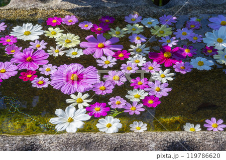 般若寺のコスモスが浮かぶ水鉢
