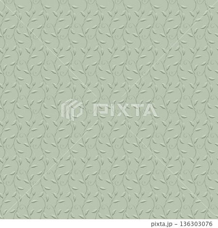 上品な植物柄(蔦・リーフ)のエンボステクスチャ背景 シームレス セージグリーン