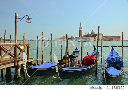 Gondolas on Grand Canal and San Giorgio Maggiore church
