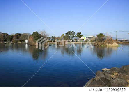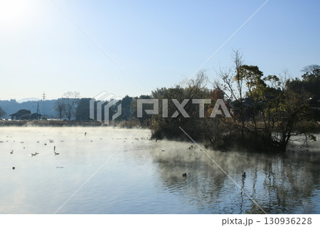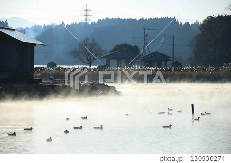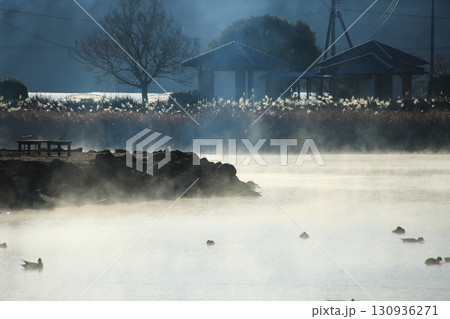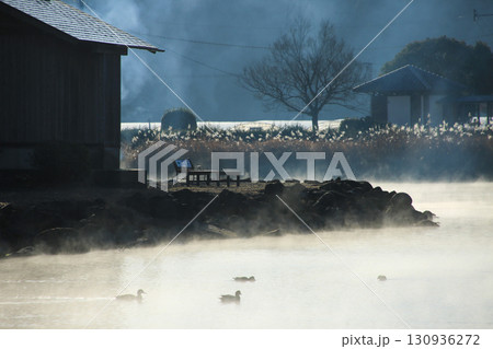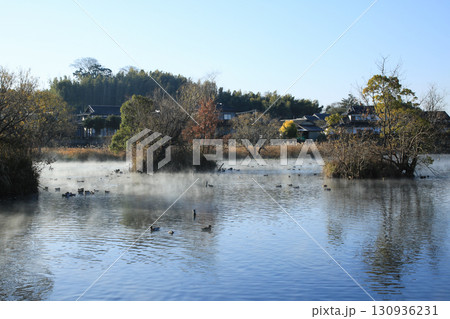 冬の夫婦神の浮島神社と湧水池 (熊本県嘉島町)
