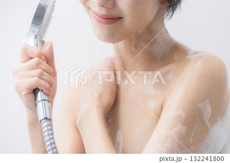 水滴が綺麗なシャワーで体を洗う女性のイメージ 顔無し