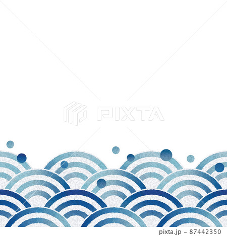 波の文様と水しぶき_パターンフレーム_青グラデーション_水彩タッチ_ベクターイラスト