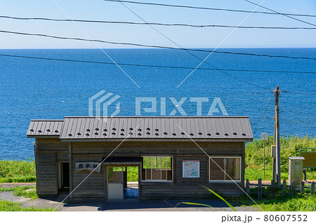 日本海が駅舎からみえる駅A