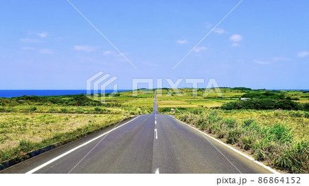 海が見える昼下がりの奄美群島喜界島のシュガーロード