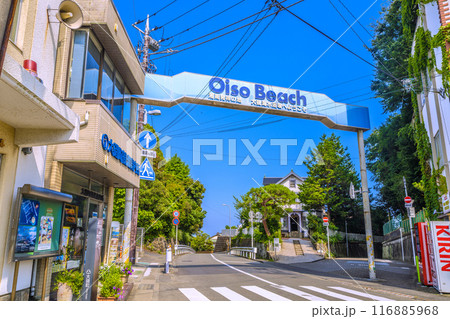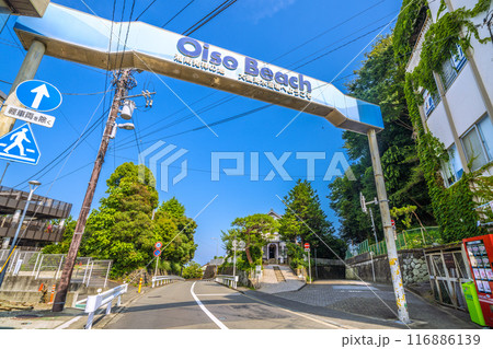 日本の大磯都市景観 7月。JR大磯駅や通過するEF210-354(JR貨物EF210形電気機関車)…
