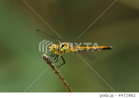 ぶら下がってとまるシオカラトンボの未成熟メス